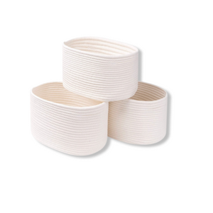 These cream colored roped baskets are my favorite. They come in various shapes and sizes and are extremely versatile in use. This brand has over 15 different colors to choose from as well as alternative sizes as well. The material used is 100% natural and environmentally safe with no plastics or harsh chemicals